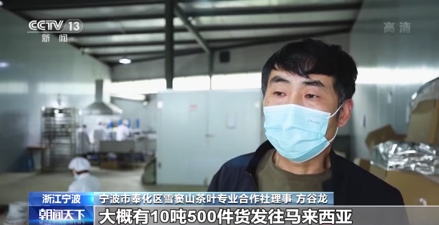 寧波海關(guān)所屬奉化海關(guān)綜合業(yè)務(wù)一科科長 高保立:RCEP(《區(qū)域全面經(jīng)濟(jì)伙伴關(guān)系協(xié)定》)實(shí)施使區(qū)域伙伴關(guān)系更加緊密,我們這批茶葉出口至馬來西亞深加工以后,再出口到RCEP(《區(qū)域全面經(jīng)濟(jì)伙伴關(guān)系協(xié)定》)其他成員國,就可以享受到關(guān)稅紅利,這樣帶來一個(gè)更廣闊的出口市場,也帶動我們產(chǎn)業(yè)更多的出口。