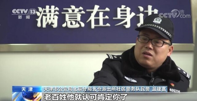 天津市公安局北辰分局北倉派出所社區(qū)警務隊民警 溫建富:管的時間也長了,老百姓這關系也融洽了,建立了深厚的感情,關系特別好,平時加班加點也不感到累。