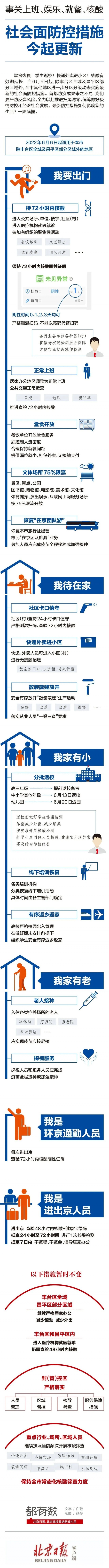 自6月6日起,除豐臺區(qū)全域及昌平區(qū)部分區(qū)域外,全市其他地區(qū)進一步分區(qū)分級動態(tài)實施最新的社會面防控措施。