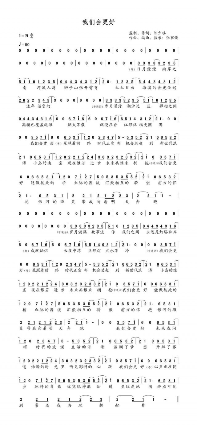 中央廣播電視總臺(tái)策劃制作的慶祝香港回歸祖國(guó)25周年主題歌曲《我們會(huì)更好》普通話粵語(yǔ)融合版本、粵語(yǔ)版本近日重磅發(fā)布上線。目前話題閱讀1.3億,播放超1300萬(wàn)。香港著名音樂(lè)人陳少琪任制作人及作詞,張家誠(chéng)作曲,香港歌手容祖兒、陳偉霆和內(nèi)地歌手譚維維、孫楠聯(lián)袂演唱。