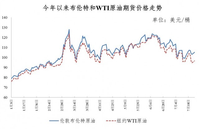 調(diào)價(jià)周期內(nèi),沙特表示原油產(chǎn)能有限、拒絕大幅增產(chǎn),給油價(jià)帶來一定支撐。但市場對全球經(jīng)濟(jì)衰退、原油需求減少的擔(dān)憂情緒繼續(xù)升溫,油價(jià)在大幅震蕩中明顯下跌。一方面高油價(jià)已對當(dāng)前消費(fèi)產(chǎn)生抑制,美國夏季出行季汽油需求同比下降近8%,接近2020年7月以來的較低水平,庫存增幅遠(yuǎn)大于預(yù)期。另一方面,高通脹對經(jīng)濟(jì)的影響日益增大,市場對全球經(jīng)濟(jì)及原油需求增長預(yù)期均下滑,歐盟下調(diào)歐元區(qū)今明兩年經(jīng)濟(jì)增長預(yù)測值,歐佩克預(yù)計(jì)明年原油需求增速將下滑70萬桶/日。此外,美元指數(shù)再創(chuàng)20年新高也打壓以美元計(jì)價(jià)的原油價(jià)格,兩市油價(jià)降至今年4月以來低點(diǎn)。平均來看,倫敦布倫特、紐約WTI油價(jià)分別比上個(gè)調(diào)價(jià)周期下降5.87%、6.78%。
