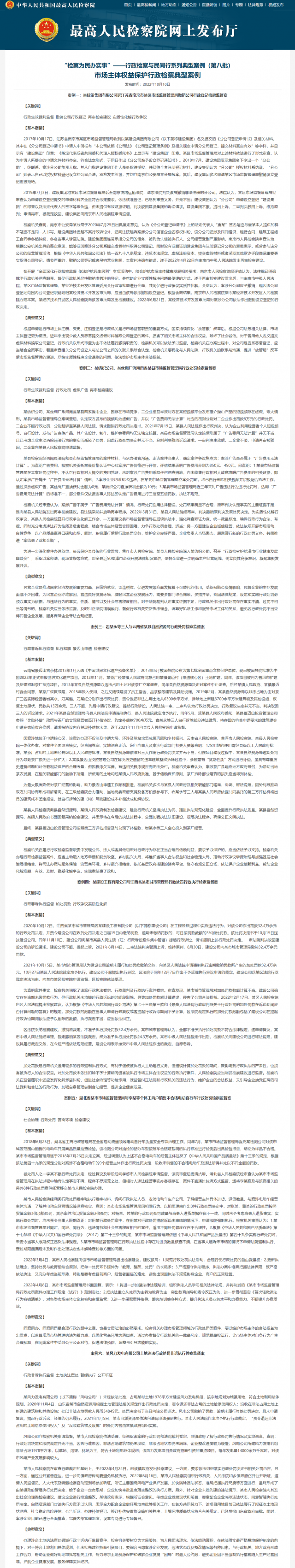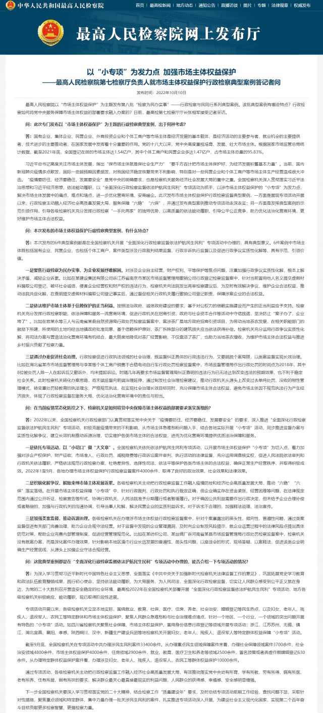 央視網(wǎng)消息:據(jù)中華人民共和國最高人民檢察院網(wǎng)站消息,10月10日,最高人民檢察院以“市場主體權(quán)益保護”為主題發(fā)布第八批“檢察為民辦實事”——行政檢察與民同行系列典型案例。