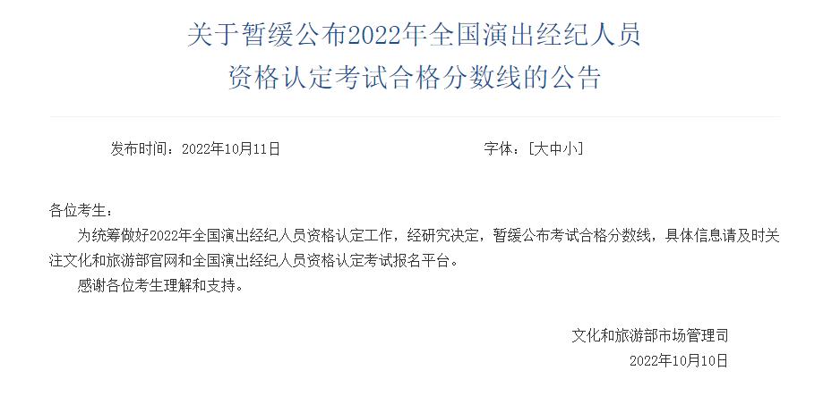 文旅部:暫緩公布演出經(jīng)紀(jì)人員資格認(rèn)定考試合格分?jǐn)?shù)線(xiàn)