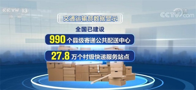 央視網(wǎng)消息:目前,我國(guó)正在健全縣、鄉(xiāng)、村三級(jí)物流體系,全力打通農(nóng)村消費(fèi)升級(jí)和農(nóng)產(chǎn)品上行的末梢循環(huán)。交通運(yùn)輸部數(shù)據(jù)顯示,目前,全國(guó)已建設(shè)990個(gè)縣級(jí)寄遞公共配送中心、27.8萬(wàn)個(gè)村級(jí)快遞服務(wù)站點(diǎn)。交郵聯(lián)運(yùn)覆蓋2185個(gè)鄉(xiāng)鎮(zhèn)、1.5萬(wàn)個(gè)村。