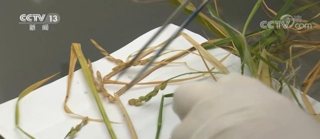 總臺央視記者 張春玲:在中科院空間應(yīng)用中心,實驗人員正在對從太空返回的植物種子進(jìn)行相關(guān)處理。他們要及時的進(jìn)行分解和化學(xué)固化處理,在他們面前所擺放著這次太空中三粒植物種子收獲的多株稻穗,可謂是碩果累累。