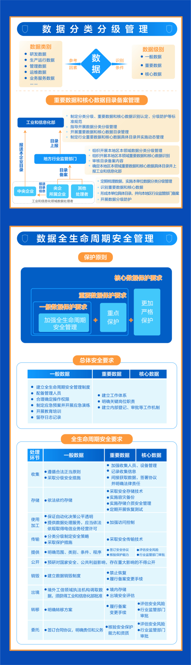 《管理辦法》以數(shù)據(jù)分級(jí)保護(hù)為總體原則,要求一般數(shù)據(jù)加強(qiáng)全生命周期安全管理,重要數(shù)據(jù)在一般數(shù)據(jù)保護(hù)的基礎(chǔ)上進(jìn)行重點(diǎn)保護(hù),核心數(shù)據(jù)在重要數(shù)據(jù)保護(hù)的基礎(chǔ)上實(shí)施更加嚴(yán)格保護(hù)。對于不同級(jí)別數(shù)據(jù)同時(shí)被處理且難以分別采取保護(hù)措施的,采取“就高”原則,按照其中級(jí)別最高的要求實(shí)施保護(hù)。