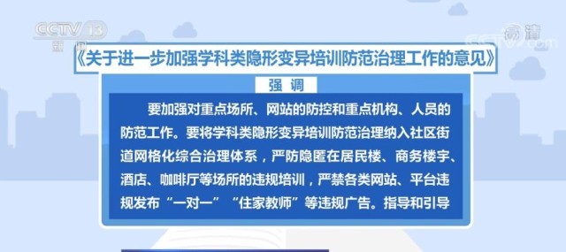 央視網(wǎng)消息:近日,教育部辦公廳等十二部門聯(lián)合印發(fā)了《關(guān)于進一步加強學(xué)科類隱形變異培訓(xùn)防范治理工作的意見》?!兑庖姟芬?,到2024年6月,全面清除隱形變異培訓(xùn)。