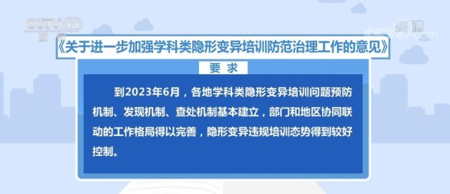 《意見》要求,到2023年6月,各地學(xué)科類隱形變異培訓(xùn)問題預(yù)防機制、發(fā)現(xiàn)機制、查處機制基本建立,部門和地區(qū)協(xié)同聯(lián)動的工作格局得以完善,隱形變異違規(guī)培訓(xùn)態(tài)勢得到較好控制。到2024年6月,學(xué)科類隱形變異培訓(xùn)防范治理的長效機制得到健全,治理工作態(tài)勢持續(xù)向好,隱形變異培訓(xùn)得以全面清除。