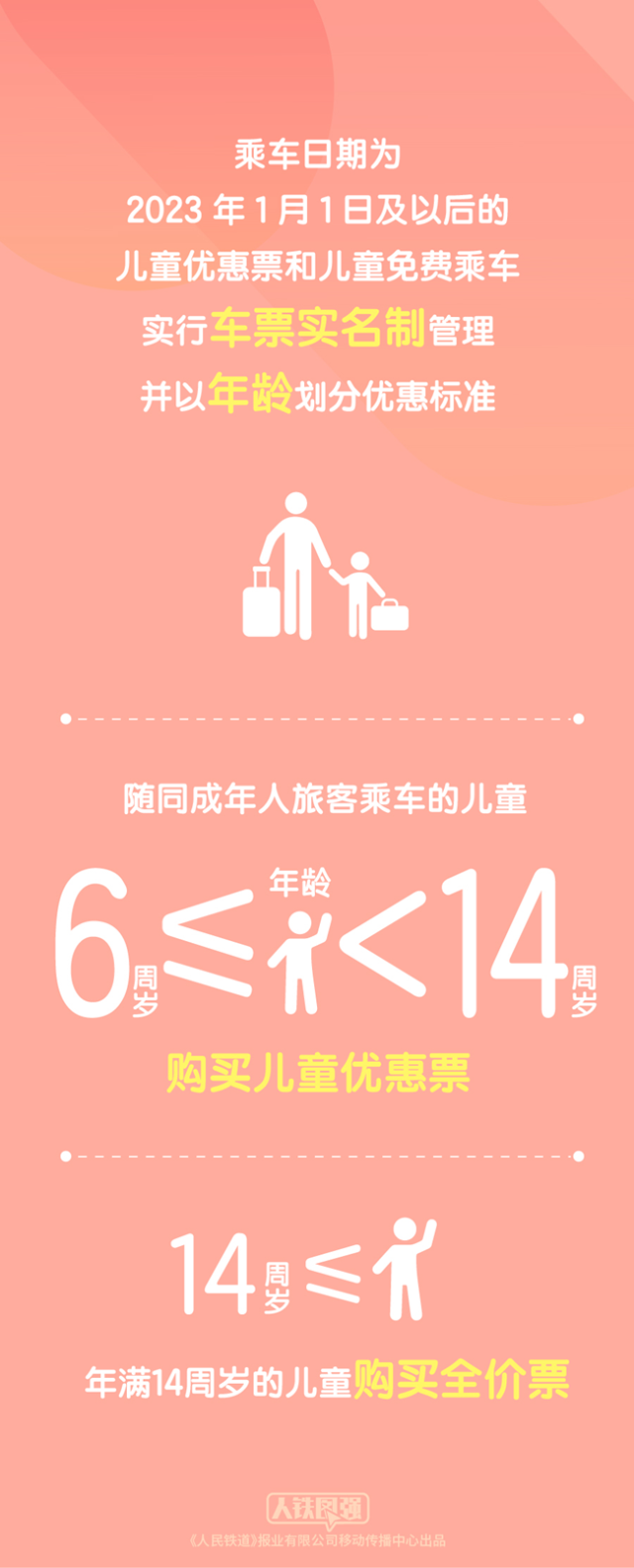 《客規(guī)》明確,乘車日期為2023年1月1日及以后的兒童優(yōu)惠票和兒童免費乘車實行車票實名制管理并以年齡劃分優(yōu)惠標準。