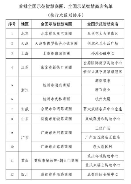 - 商務(wù)部公布首批全國示范智慧商圈、全國示范智慧商店名單