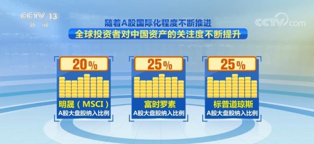 隨著A股國(guó)際化程度不斷推進(jìn),全球投資者對(duì)中國(guó)資產(chǎn)的關(guān)注度不斷提升。明晟(MSCI)、富時(shí)羅素和標(biāo)普道瓊斯的A股大盤(pán)股納入比例已分別達(dá)到20%、25%和25%。