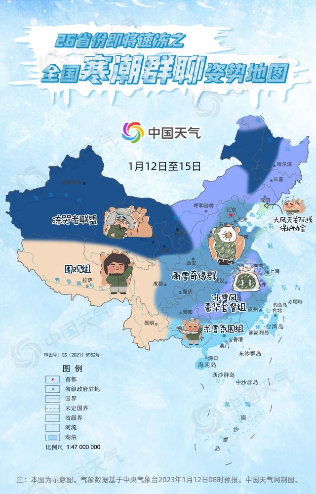 1月12日,2023年首場寒潮已抵達內(nèi)蒙古一帶,未來幾天將大舉南下橫掃我國大部,中央氣象臺已升級發(fā)布寒潮黃色預(yù)警,約26省區(qū)市即將加入寒潮群聊。哪里將加入“凍哭者聯(lián)盟”?哪里將獲得“冰雪風(fēng)超級豪華套餐”?哪里與雪無緣默默充當(dāng)“求雪氛圍組”?中國天氣網(wǎng)推出全國寒潮群聊姿勢地圖,請各位對號入座掃碼進群!