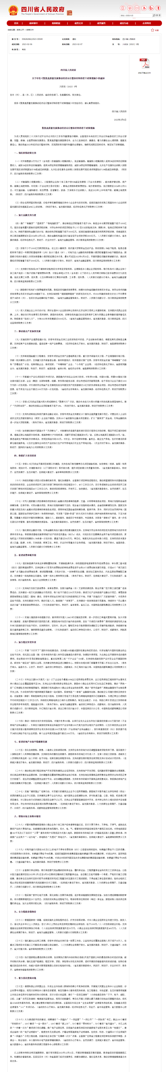 央視網(wǎng)消息:四川省人民政府印發(fā)《聚焦高質(zhì)量發(fā)展推動經(jīng)濟運行整體好轉(zhuǎn)的若干政策措施》。其中,在促進房地產(chǎn)市場平穩(wěn)健康發(fā)展方面:優(yōu)化住房限購、限售、二套房認定標準等政策,支持符合條件的地方動態(tài)調(diào)整首套房貸款利率下限,落實居民個人換購住房個人所得稅優(yōu)惠政策,支持剛性和改善性住房需求。鼓勵有條件的地區(qū)對引進人才、生育二孩或三孩家庭、進城務(wù)工人員等購買商品房(含二手房)給予補貼。培育發(fā)展住房租賃市場,支持成都發(fā)揮好租賃住房貸款支持計劃試點示范作用。