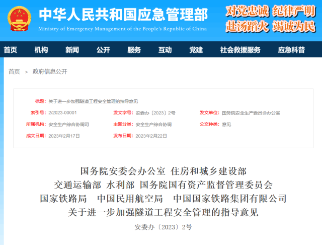 央視網(wǎng)消息:據(jù)應(yīng)急管理部網(wǎng)站消息,國務(wù)院安委會辦公室等八部門發(fā)布關(guān)于進(jìn)一步加強隧道工程安全管理的指導(dǎo)意見。全文如下:
