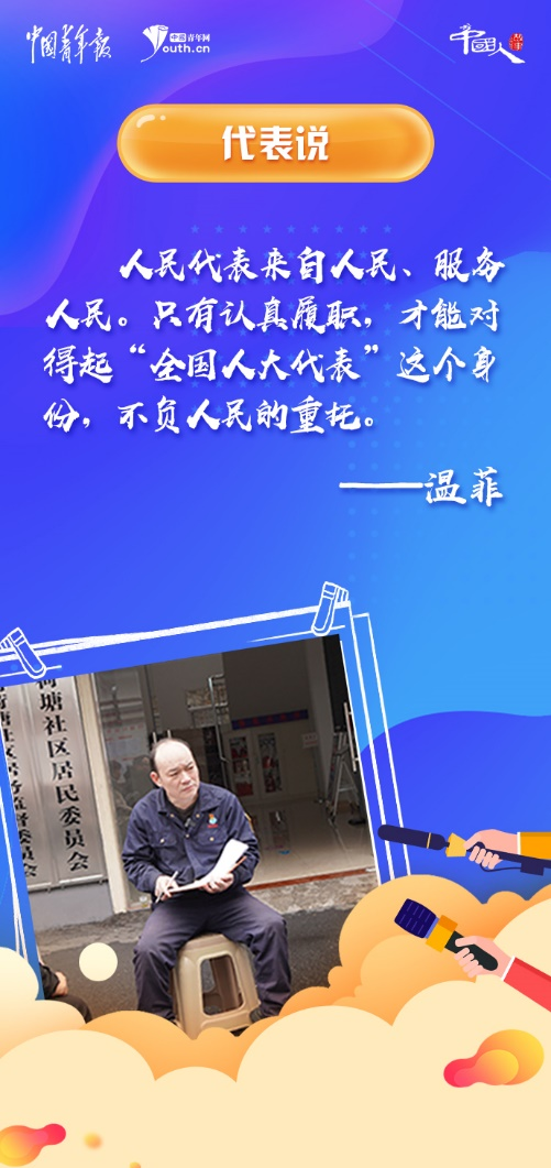 “人民代表來(lái)自人民、服務(wù)人民。”溫菲表示,只有認(rèn)真履職,才能對(duì)得起“全國(guó)人大代表”這個(gè)身份,不負(fù)人民的重托。