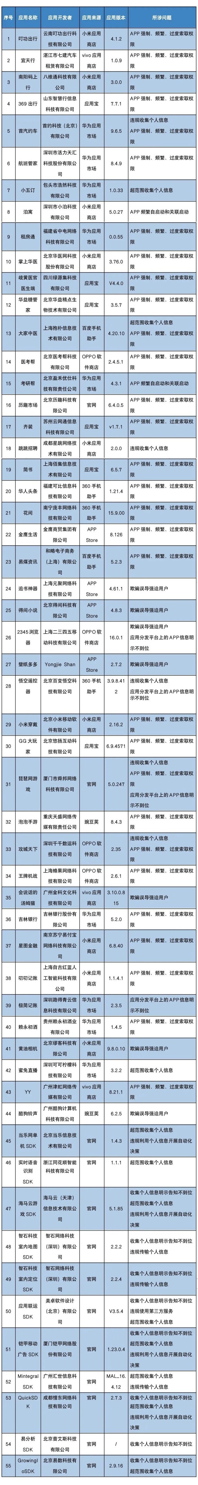 依據(jù)相關(guān)法律法規(guī),工信部近期組織第三方檢測(cè)機(jī)構(gòu)對(duì)群眾關(guān)注的生活服務(wù)、休閑娛樂、實(shí)用工具等APP及SDK進(jìn)行檢查,發(fā)現(xiàn)55款A(yù)PP及SDK存在侵害用戶權(quán)益行為。工信部要求上述APP及SDK按有關(guān)規(guī)定進(jìn)行整改,整改落實(shí)不到位的,工信部將依法依規(guī)組織開展相關(guān)處置工作。