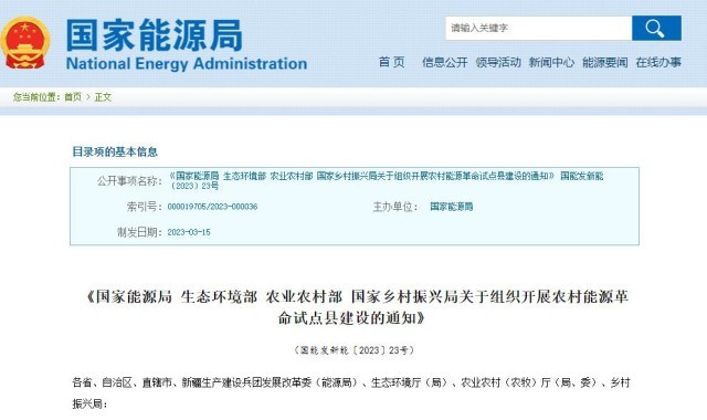 央視網(wǎng)消息:近日,國(guó)家能源局、生態(tài)環(huán)境部、農(nóng)業(yè)農(nóng)村部、國(guó)家鄉(xiāng)村振興局發(fā)布《關(guān)于組織開展農(nóng)村能源革命試點(diǎn)縣建設(shè)的通知》。具體如下: