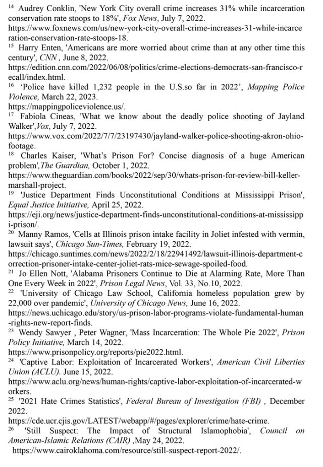 執(zhí)法司法領(lǐng)域種族歧視根深蒂固。聯(lián)合國(guó)消除種族歧視委員會(huì)的結(jié)論性報(bào)告指出,美國(guó)執(zhí)法人員對(duì)有色人種和少數(shù)族裔群體過度使用暴力并逍遙法外的情況仍然普遍存在;有色人種和少數(shù)族裔在美國(guó)司法系統(tǒng)中被逮捕、監(jiān)禁和長(zhǎng)期虐待的情況突出。(注73)“警察暴力地圖”網(wǎng)站的數(shù)據(jù)顯示,在2013年至2022年的警察殺人事件中,非洲裔被警察殺害的可能性是白人的2.78倍,手無寸鐵的非洲裔被警察殺害的可能性是手無寸鐵的白人的1.3倍。在波士頓、明尼阿波利斯和芝加哥,非洲裔被警察殺害的可能性更是白人的20多倍。(注74)美國(guó)國(guó)家公共電臺(tái)2022年9月27日?qǐng)?bào)道,國(guó)家免責(zé)登記處發(fā)布的報(bào)告指出,非洲裔在美國(guó)人口中所占比例不到14%,但在美國(guó)被誤判犯有嚴(yán)重罪行并在至少服完部分刑期后獲釋的所有人中,非洲裔占了53%;美國(guó)非洲裔因三項(xiàng)重大罪行被錯(cuò)誤定罪的可能性是白人的7倍,非洲裔因毒品犯罪被錯(cuò)誤定罪的可能性是其他人的19倍。(注75)美國(guó)國(guó)家學(xué)院出版的《美國(guó)監(jiān)禁的增長(zhǎng):探索原因和后果》一書指出,滲透著種族主義的刑事司法系統(tǒng)“正日益成為一個(gè)更大的污名化和長(zhǎng)期邊緣化系統(tǒng)的主要通道”。(注76)