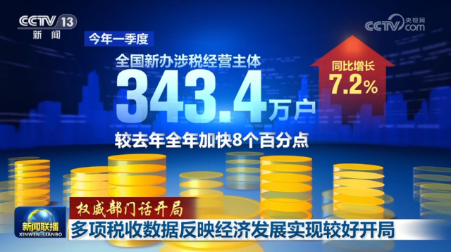 央視網(wǎng)消息(新聞聯(lián)播):在國新辦今天(4月6日)舉行的“權威部門話開局”系列主題新聞發(fā)布會上,國家稅務總局負責人表示,多項稅收數(shù)據(jù)反映出我國經(jīng)濟發(fā)展實現(xiàn)了較好開局。