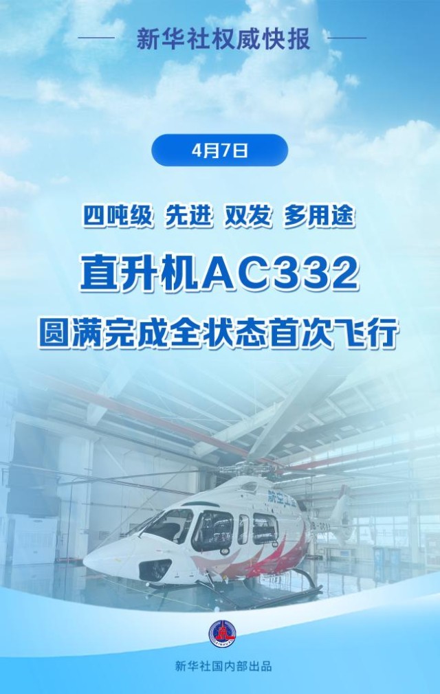 我國(guó)全新研制的AC332直升機(jī)圓滿完成全狀態(tài)首次飛行
