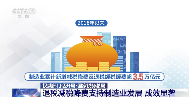 據(jù)介紹,在一系列退稅減稅降費舉措中,下調(diào)制造業(yè)等領(lǐng)域的增值稅稅率、率先提高制造業(yè)研發(fā)費用加計扣除比例、加大制造業(yè)增值稅留抵退稅力度等減負措施,有效支持了制造業(yè)緩解經(jīng)營壓力、增強創(chuàng)新動力、激活發(fā)展?jié)摿Α?/p>