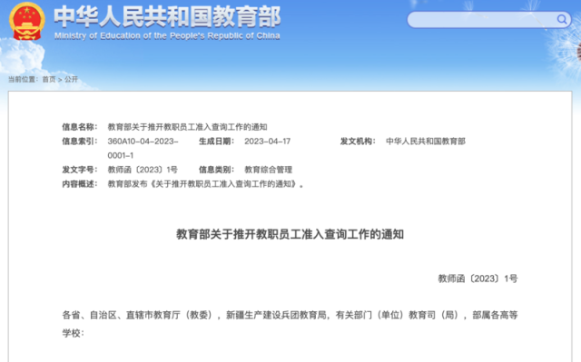 教育部部署教職員工準入查詢制度:對師德違規(guī)問題“零容忍”