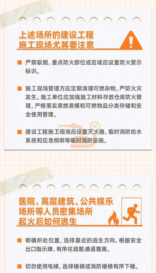 當(dāng)你走進(jìn)KTV、高層寫字樓、醫(yī)院等人員密集場所時(shí),是否留心觀察過消防通道的位置?日常經(jīng)過的住宅樓道內(nèi)是否張貼了消防要求?生命安全無小事,著眼細(xì)處才能防患于未“燃”。這里有一份火災(zāi)高風(fēng)險(xiǎn)區(qū)域場所的消防小貼士,請查收~