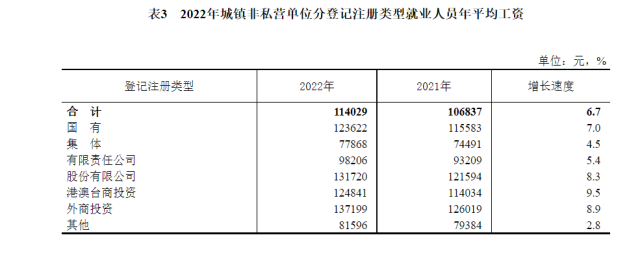 2022年全國城鎮(zhèn)非私營單位就業(yè)人員年平均工資為114029元