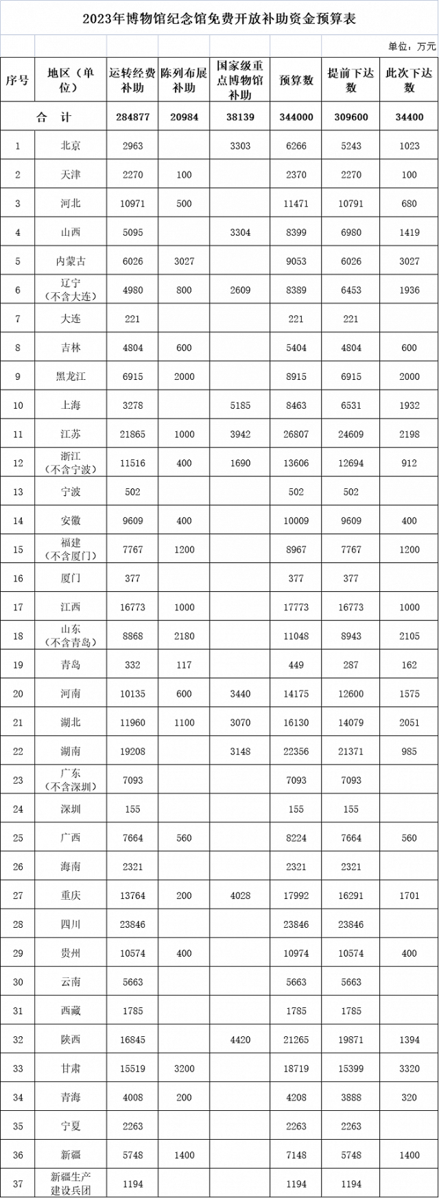 央視網(wǎng)消息:據(jù)財(cái)政部網(wǎng)站消息,根據(jù)《關(guān)于全國博物館、紀(jì)念館免費(fèi)開放的通知》(中宣發(fā)〔2008〕2號)精神,財(cái)政部下達(dá)2023年博物館紀(jì)念館免費(fèi)開放補(bǔ)助資金(項(xiàng)目代碼:10000013Z135050000044,2023年政府收支分類科目:1100208結(jié)算補(bǔ)助收入)。數(shù)據(jù)顯示,全國預(yù)算344000萬元,提前下達(dá)309600萬元,此次下達(dá)34400萬元。
