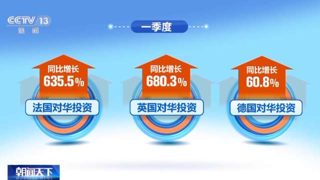 數(shù)據(jù)顯示,一季度,法國、英國、德國對華投資大幅增長,同比分別增長635.5%、680.3%和60.8%。日本、瑞士、韓國對華投資也同比分別增長47.7%、47.4%和36.5%,“一帶一路”沿線國家對華投資同比增長27.8%。
