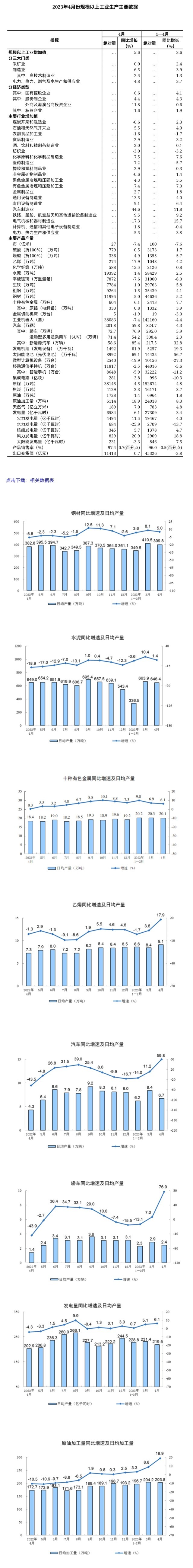 國(guó)家統(tǒng)計(jì)局:2023年4月份規(guī)模以上工業(yè)增加值同比增長(zhǎng)5.6%