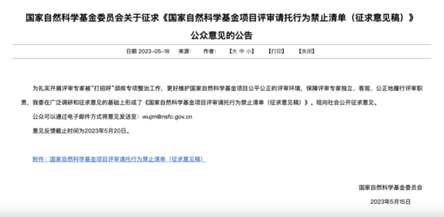 國(guó)家自然科學(xué)基金項(xiàng)目評(píng)審請(qǐng)托行為禁止清單公開征求意見(jiàn)