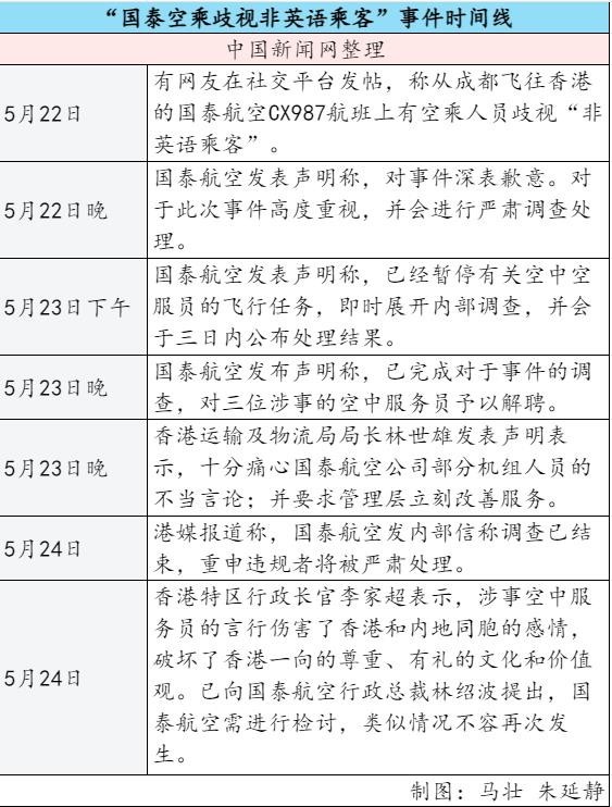 - 國泰航空:乘務(wù)員歧視非英語乘客 三日內(nèi)公布處理結(jié)果