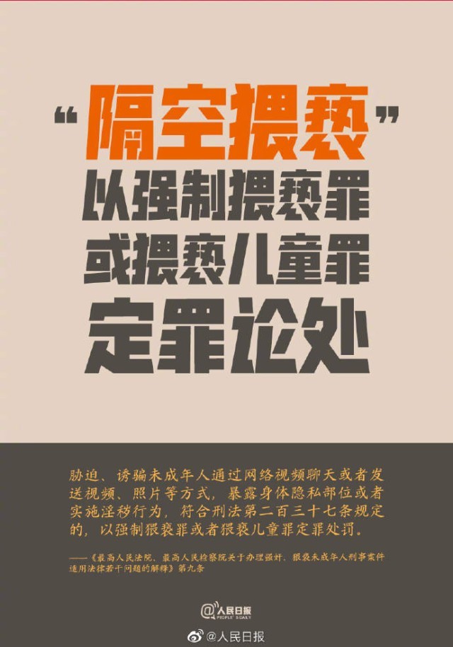 25日,兩高聯(lián)合發(fā)布司法解釋。其中,兩高對(duì)隔空猥褻發(fā)布司法解釋,以強(qiáng)制猥褻罪或猥褻兒童罪定罪論處;精神發(fā)育遲滯未成年懷孕可直接立案…戳↓↓每一個(gè)孩子都要健康快樂成長(zhǎng)!