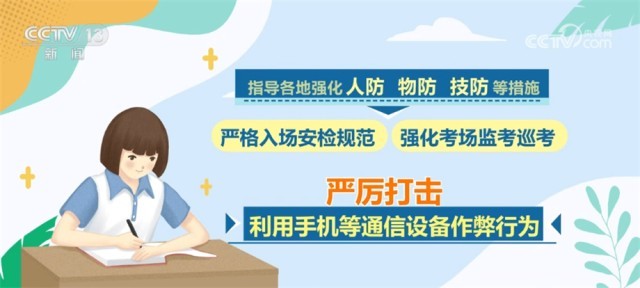 同時,會同公安部、工業(yè)和信息化部等部門聯(lián)合開展打擊作弊專項行動,將防范手機作弊作為重中之重,多措并舉、綜合施策,指導(dǎo)各地強化人防、物防、技防等措施,嚴(yán)格入場安檢規(guī)范,強化考場監(jiān)考巡考,嚴(yán)厲打擊利用手機等通信設(shè)備作弊行為。對于在高考中存在作弊行為的考生和人員,將依法依規(guī)嚴(yán)肅處理,堅決維護高考的公平公正。