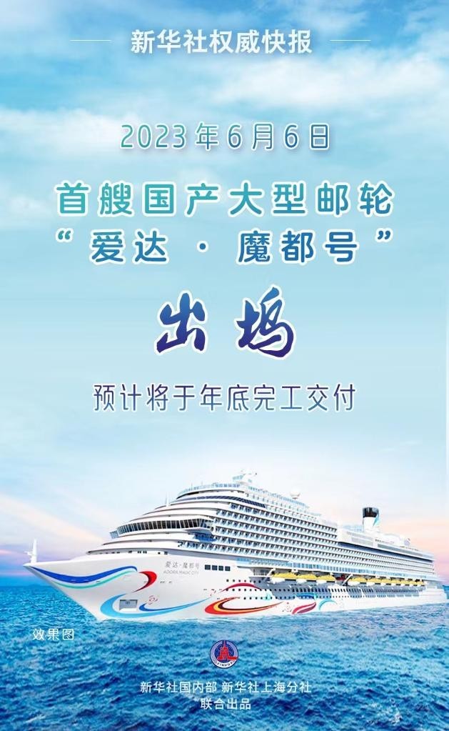 6月6日,由中國(guó)船舶外高橋造船有限公司建造的首艘國(guó)產(chǎn)大型郵輪“愛(ài)達(dá)·魔都號(hào)”出塢,
