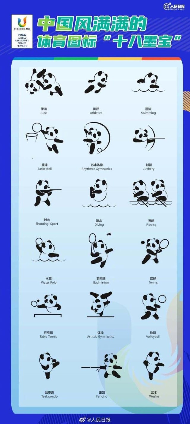第31屆世界大學(xué)生夏季運(yùn)動(dòng)會(huì)將于7月28日—8月8日在四川成都舉辦?!叭貙殹薄叭鼗稹薄叭毓狻保瞪捣植磺??可愛的熊貓圖標(biāo),認(rèn)得出是哪個(gè)項(xiàng)目嗎?此外,這些體壇名將曾參加過大運(yùn)會(huì)!成都大運(yùn)會(huì)還有2周開幕,期待!