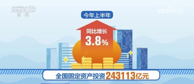 今年上半年,全國固定資產(chǎn)投資243113億元,同比增長3.8%。