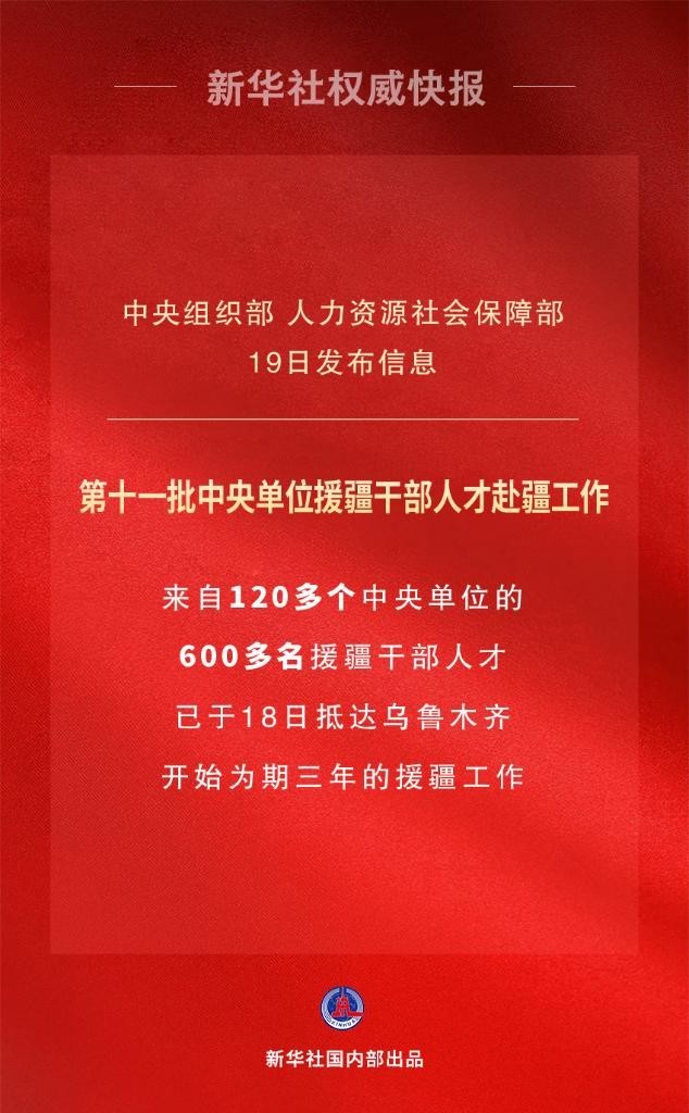 7月18日,中央組織部、人力資源社會保障部有關(guān)負責同志帶隊,送第十一批中央單位援疆干部人才抵達烏魯木齊,開始了為期三年的援疆工作。