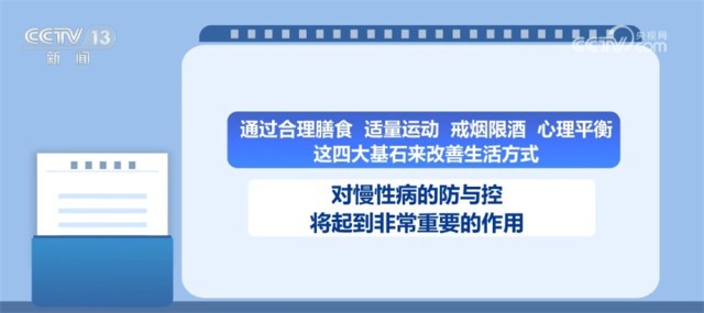 專家表示,在世衛(wèi)組織向全球發(fā)布的健康公式中,影響健康的因素,個(gè)人生活方式占60%、遺傳占15%、環(huán)境因素占17%,而醫(yī)療服務(wù)因素僅占8%,生活方式是最可被控制以及最有影響力的因素。通過合理膳食、適量運(yùn)動(dòng)、戒煙限酒和心理平衡這四大基石來改善生活方式,對慢性病的防與控將起到非常重要的作用。研究顯示,80%的冠心病、90%的2型糖尿病、三分之一的癌癥可以通過控?zé)熛蘧?、健康飲食、維持正常體重等這些措施來預(yù)防。
