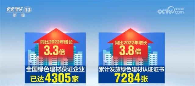 目前,全國綠色建材獲證企業(yè)已達(dá)到4305家,累計(jì)發(fā)放綠色建材認(rèn)證證書7284張,同比2022年分別增長(zhǎng)3.3和3.8倍。