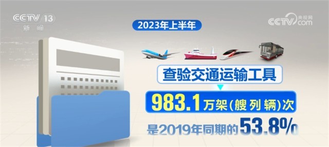 據(jù)國家移民管理局統(tǒng)計,2023年上半年,全國移民管理機(jī)構(gòu)共查驗(yàn)出入境人員1.68億人次,是2019年同期的48.8%,其中內(nèi)地居民8027.6萬人次,港澳臺居民7490.3萬人次,外國人843.8萬人次(不含邊民);查驗(yàn)交通運(yùn)輸工具983.1萬架(艘、列、輛)次,是2019年同期的53.8%,其中,飛機(jī)20.4萬架次、船舶19.1萬艘次、火車4.4萬列次、汽車939.2萬輛次。