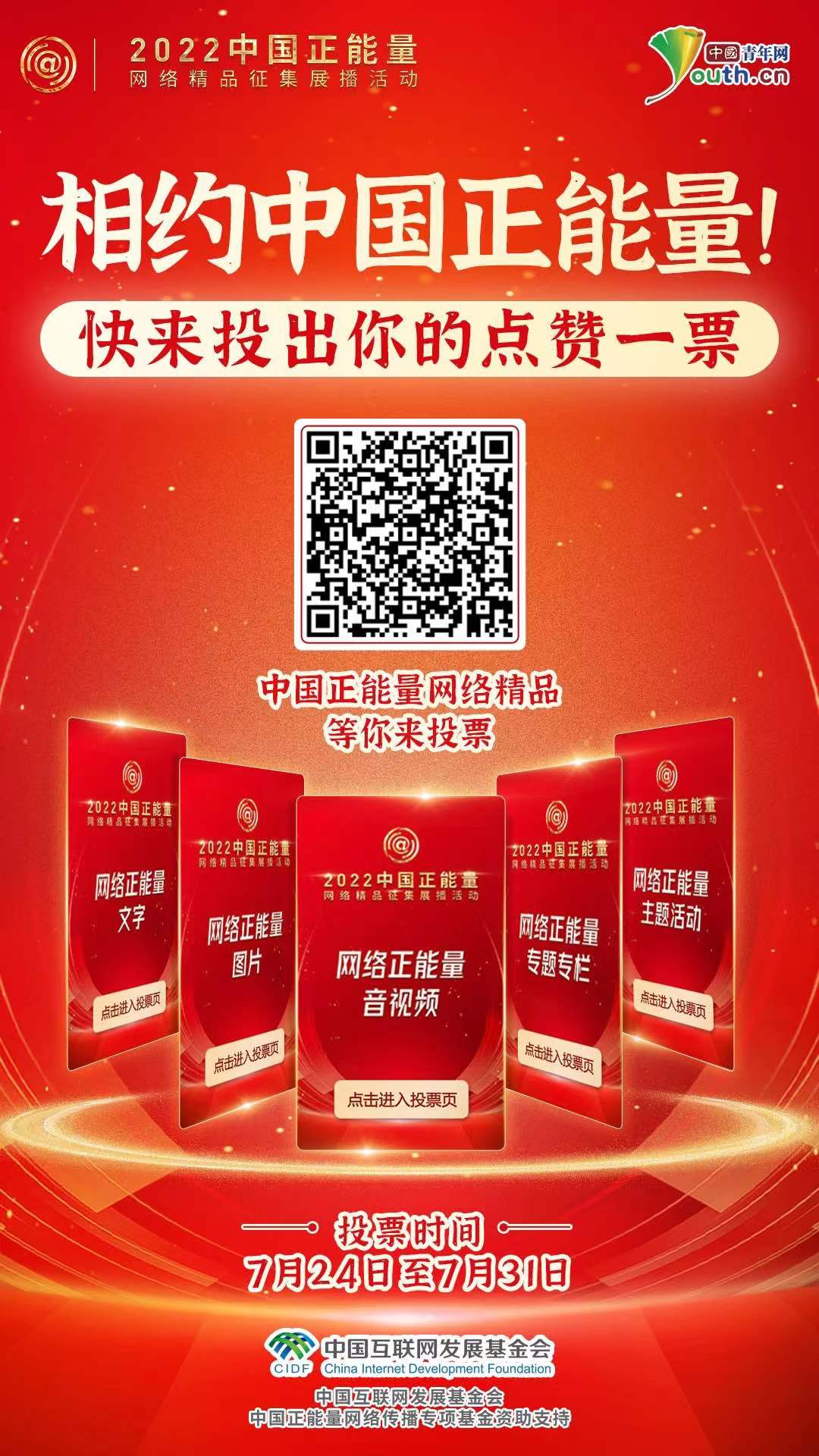2022中國(guó)正能量網(wǎng)絡(luò)精品征集展播活動(dòng)啟動(dòng)網(wǎng)絡(luò)展播投票。約1100件作品從報(bào)送作品中脫穎而出進(jìn)入終選,它們謳歌偉大時(shí)代、樹(shù)立中國(guó)榜樣、點(diǎn)贊砥礪足音,營(yíng)造清朗的網(wǎng)絡(luò)空間。網(wǎng)絡(luò)展播投票已接近尾聲,邀請(qǐng)廣大網(wǎng)友在線投出點(diǎn)贊一票,于正能量作品中汲取澎湃動(dòng)能。(潘曉文 朱鈞有)