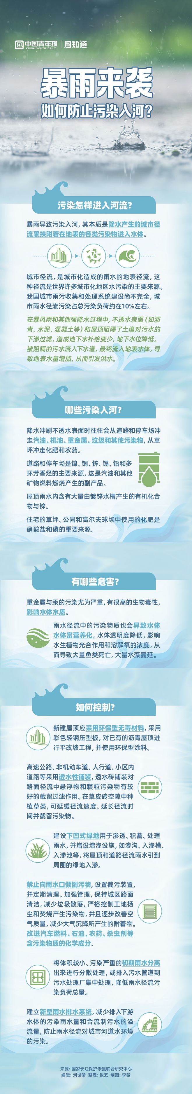 近日,臺風“杜蘇芮”給我國多地帶來暴雨甚至大暴雨。中央氣象臺今天繼續(xù)發(fā)布暴雨紅色預警。暴雨來襲,哪些污染物會被沖進河流?它們?nèi)绾斡绊懞恿?,又該如何控制?讀圖了解。