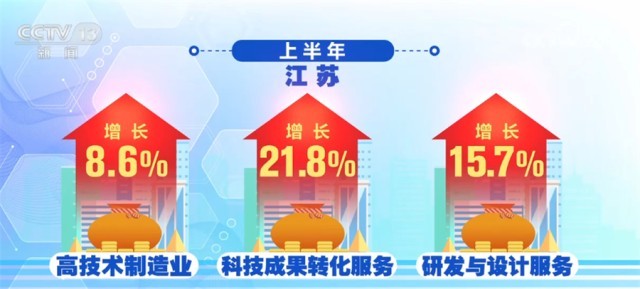 江蘇、浙江、安徽把創(chuàng)新當(dāng)做制造業(yè)升級的著力點(diǎn)。上半年,江蘇高技術(shù)制造業(yè)增長8.6%,科技成果轉(zhuǎn)化服務(wù)、研發(fā)與設(shè)計服務(wù)分別增長21.8%和15.7%。浙江上半年,科學(xué)研究和技術(shù)服務(wù)業(yè)投資增長52.2%。規(guī)模以上工業(yè)中,新產(chǎn)品產(chǎn)值率已經(jīng)達(dá)到41.4%,并在持續(xù)提高。安徽上半年裝備制造業(yè)增加值增長了15.3%,汽車產(chǎn)業(yè)增長42.6%,光伏產(chǎn)業(yè)增長了一倍。