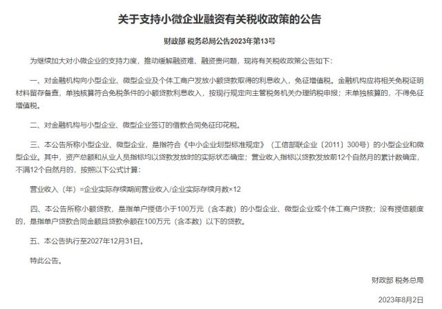 央視網(wǎng)消息:據(jù)財政部,為繼續(xù)加大對小微企業(yè)的支持力度,推動緩解融資難、融資貴問題,現(xiàn)將有關稅收政策公告如下: