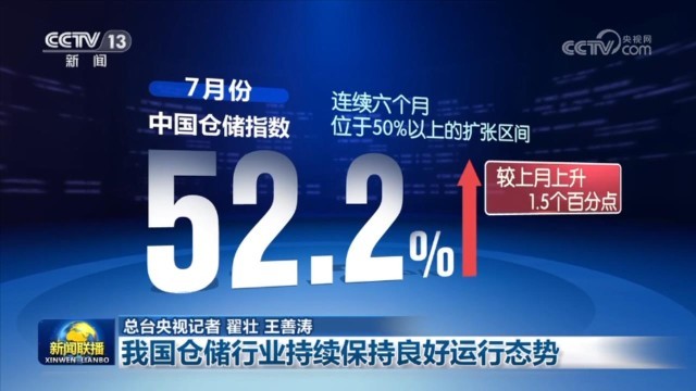 中國物流與采購聯(lián)合會2日公布,今年7月份,中國倉儲指數(shù)為52.2%,連續(xù)六個月位于50%以上的擴張區(qū)間。數(shù)據(jù)顯示,倉儲企業(yè)生產(chǎn)經(jīng)營活動活躍,業(yè)務(wù)量明顯增長,企業(yè)對市場前景保持樂觀。