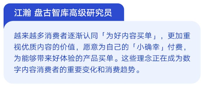 付費(fèi)用戶數(shù)的持續(xù)提升,與版權(quán)環(huán)境向好密切相關(guān)。盤古智庫高級(jí)研究員江瀚指出,越來越多的消費(fèi)者逐漸認(rèn)同了為好內(nèi)容買單的思路,也更加重視優(yōu)質(zhì)內(nèi)容的價(jià)值,愿意為自己的“小確幸”付費(fèi),為能夠給自己帶來好體驗(yàn)的產(chǎn)品買單,這一思路正在成為重要的消費(fèi)趨勢(shì)。對(duì)此,TME在財(cái)報(bào)中也表示,公司在多年的努力過程中看到,用戶支持正版的意識(shí)越來越強(qiáng)。