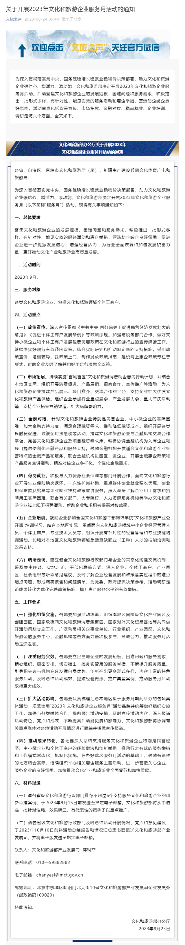 文旅部:將于9月開展2023年文化和旅游企業(yè)服務(wù)月活動