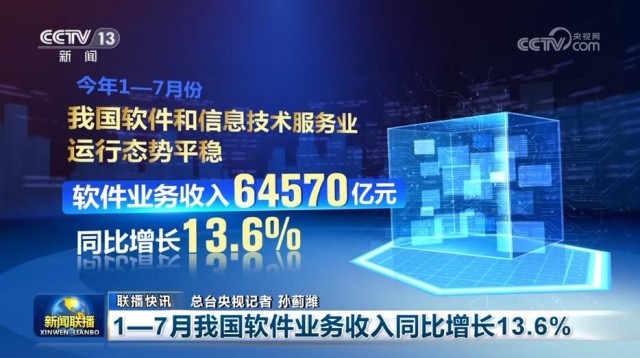 1—7月我國軟件業(yè)務收入同比增長13.6%